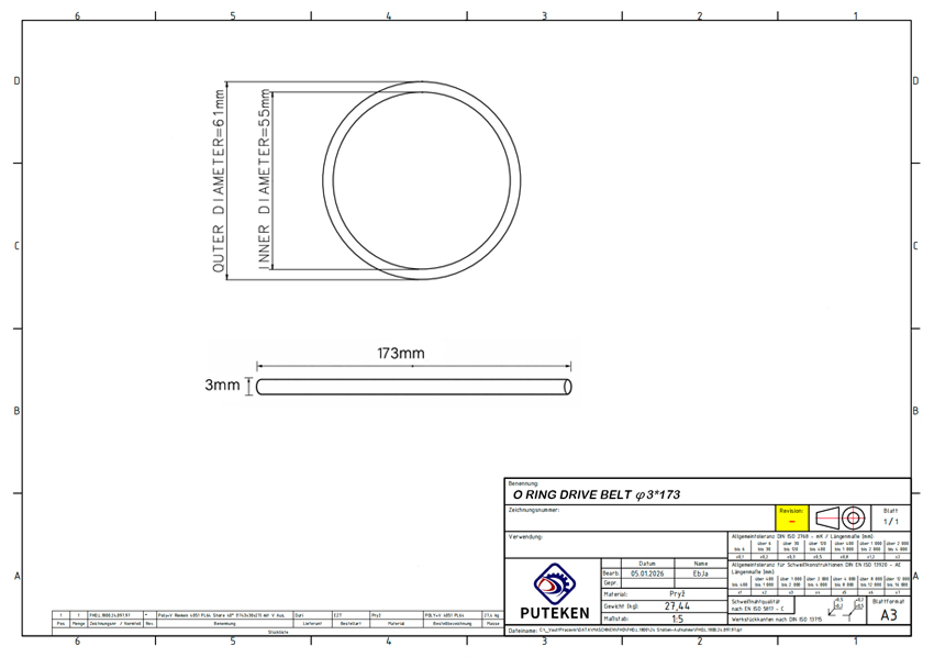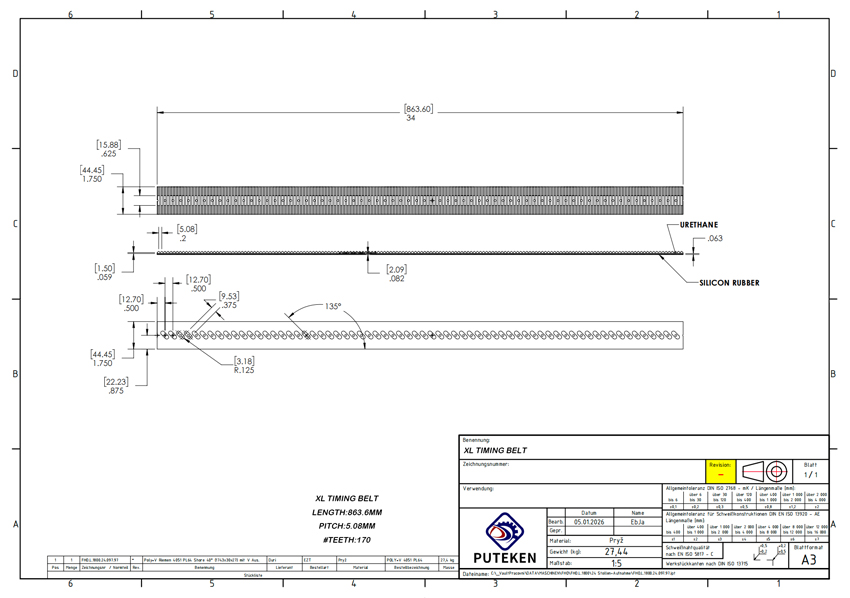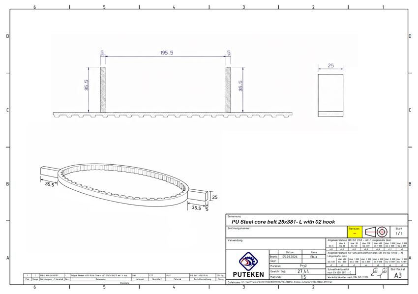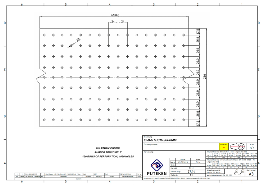 At Puteken, we provide professional technical drawing support for industrial belt products, helping customers clearly understand the belt structure, dimensions and application details before production.